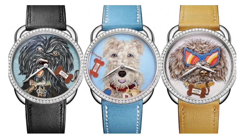 GQdaily时尚网 2025年12月4日 爱马仕Hermès用温柔笔触、风趣设计和质感工艺,叠加出可能是钟表世界里最“受宠”的那片腕间风景:全新三款狗狗面盘图案限量表。