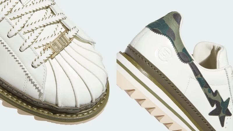 今年冬天爱迪达送上与CLOT、BAPE®的三方合作鞋款,由陈冠希亲自操刀,将经典的Superstar从鞋底到鞋面重新拆解、重组,鞋身上米白色皮革,搭配立体压纹与橄榄色调,营造比原版更前卫的街头面貌,而鞋身测最醒目的莫过于BAPE®经典的迷彩结合CLOT的丝绸纹理标志,而大锯齿设计的外底更是让 Superstar的轮廓焕有了新面貌,鞋款已在12月5日限定上市。