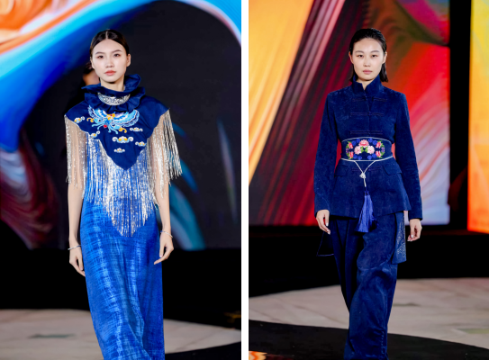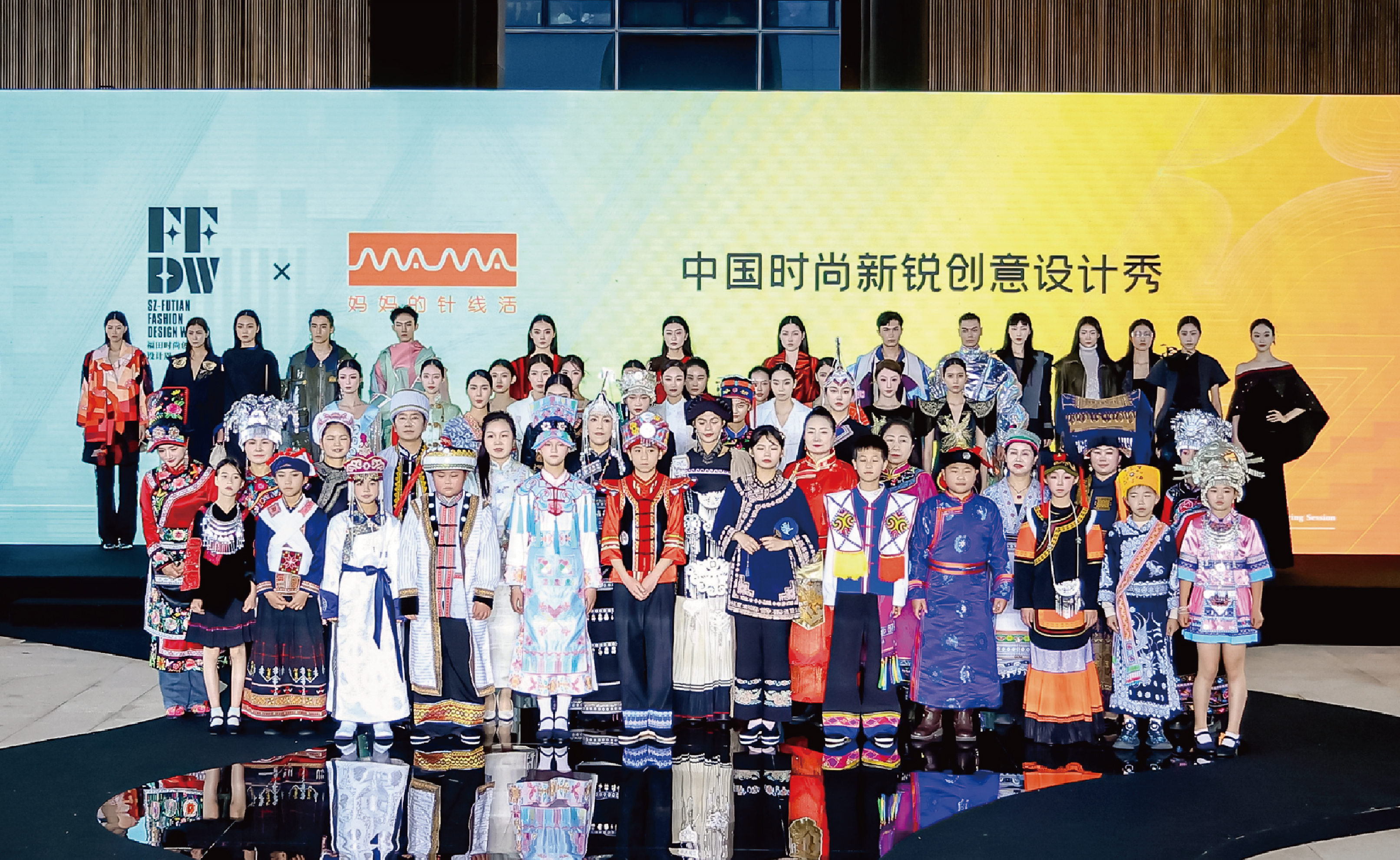 同期举行的中国时尚新锐创意设计秀,是促进会产业赋能与人才培育职能的生动实践。作为福田时尚创意设计周的核心组成部分,秀场集结青年设计师的先锋作品,其背后正是促进会整合“品牌-设计师-非遗匠人”资源的成果——设计师们萃取非遗纹样、民族色彩,以现代剪裁与创意手法重构东方美学,将文化资源转化为时尚资产。开场童声合唱《大眼睛》诠释代际传承,《命运的针线》宣传片聚焦非遗绣娘,与秀场作品共同勾勒出促进会“以美育人、以爱传城”的生态理念,而这一理念也贯穿于促进会“小小服装创意设计课”“连衣裙艺术展”等系列公益项目中。
