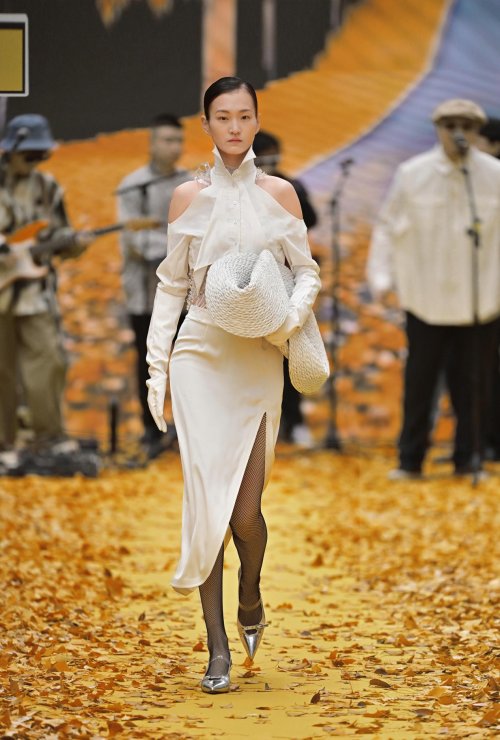 此次发布活动最具辨识度的,是将大陈本土千年古银杏元素贯穿始终,实现了产业基因、艺术创意与自然底蕴的深度融合。不同于传统秀场的封闭空间,这里以开阔户外为舞台,一条铺满金黄银杏叶的T台蜿蜒延伸,成为连接过去与当下的视觉纽带。