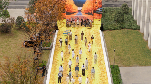 以时间为灵感,以千年银杏为媒,将大陈衬衫产业积淀与当代设计时尚艺术深度融合,为这场秀场注入独特的时尚产业温度与自然诗意。
