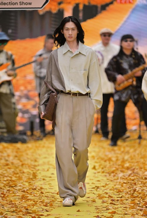 在场景呈现上,模特踏叶而行时,千年银杏的苍劲与当代衬衫的时尚轮廓形成时空对话,赋予秀场强烈的叙事张力;氛围营造上,特别邀请JahWahZoo樂隊演绎,乐队由9位资深乐手组成,以独特风格著称的“雾霾雷鬼”乐队。他们的音乐以轻快与深情并存的表达,歌颂生活、城市与自然,试图消解都市与人心之间的隔阂,唤醒在摩登时代中仍渴望自由的灵魂。他们的加入,为衬衫创新秀注入更具情绪张力与城市质感的现场氛围。